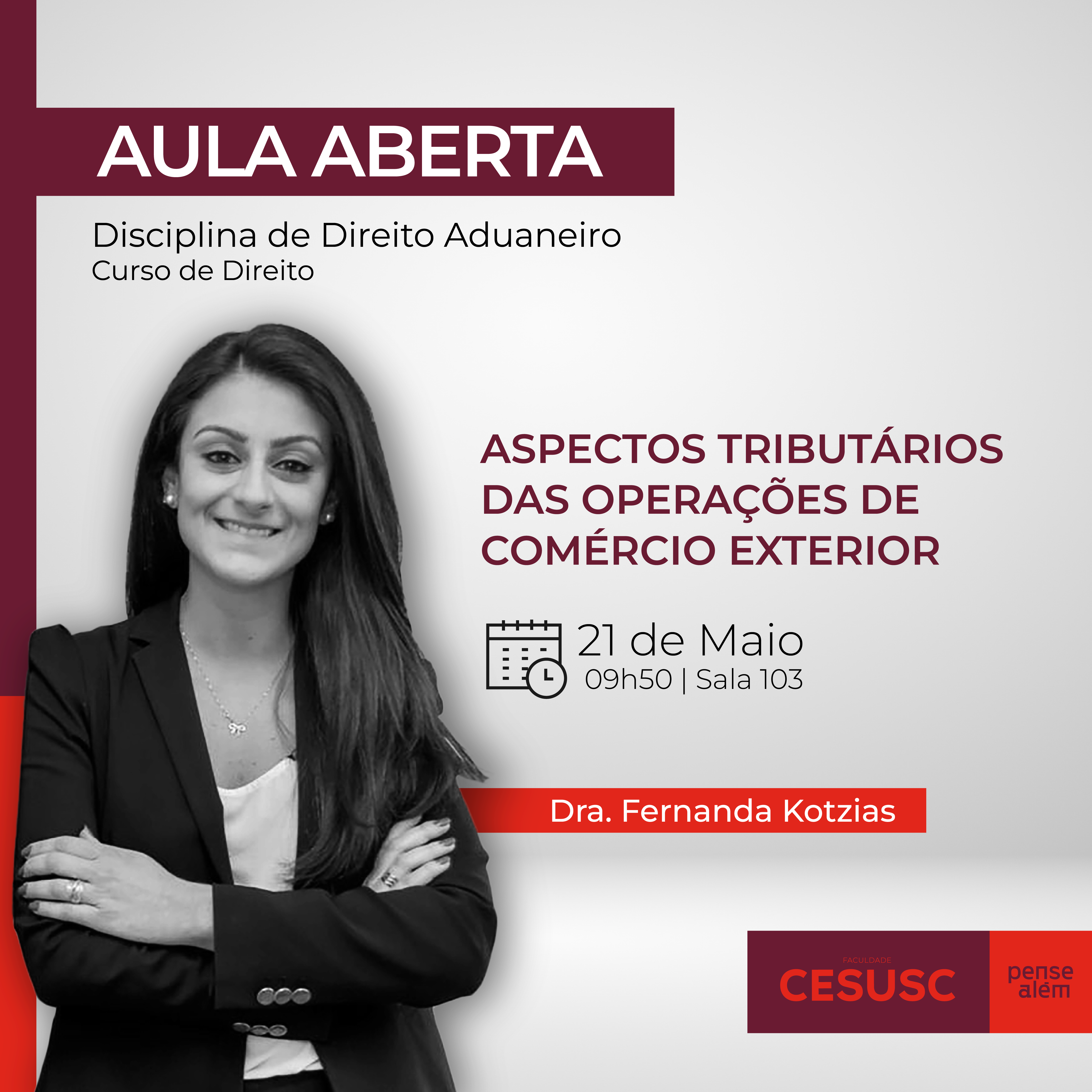 Anota aí na agenda: no dia 21 de Maio, terça-feira, às 9h50 da manhã, teremos uma Aula Aberta da disciplina de Direito Aduaneiro que será imperdível. A Profa. da disciplina, Alessandra Carioni, convidou a...
