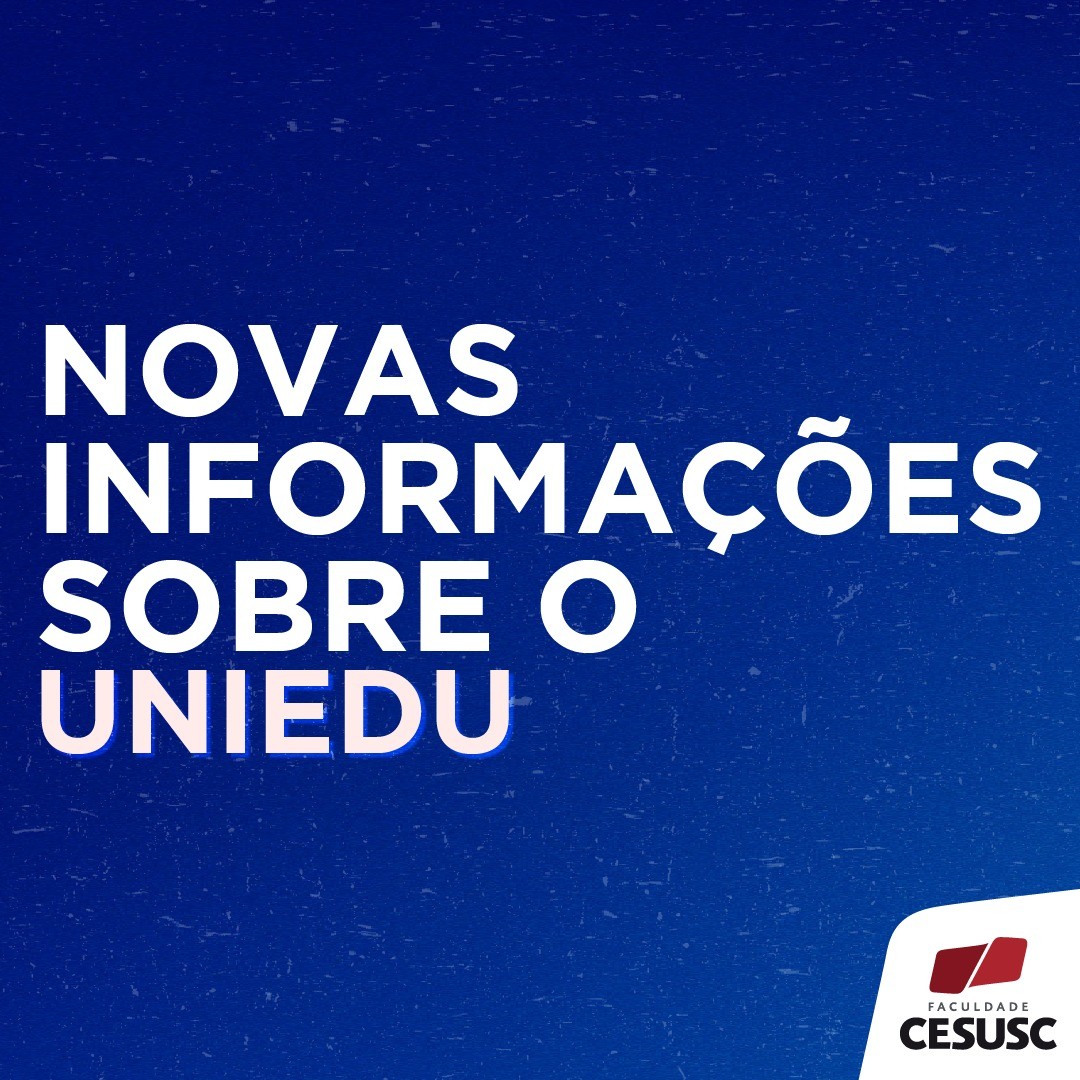 Leia a notícia completaNOVAS INFORMAÇÕES SOBRE O UNIEDU