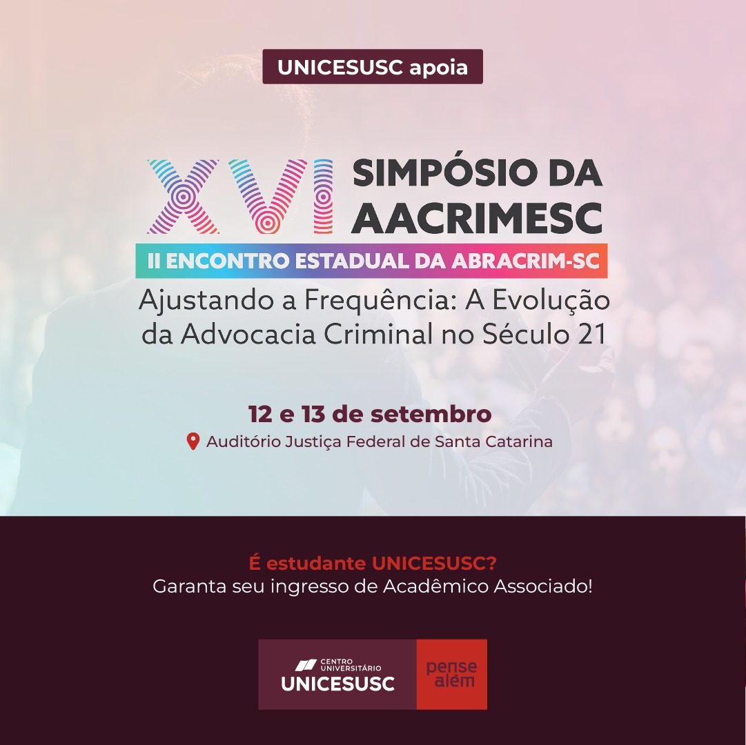 UNICESUSC Apoia o XVI Simpósio da AACRIMESC e o II Encontro Estadual da ABRACRIM/SC