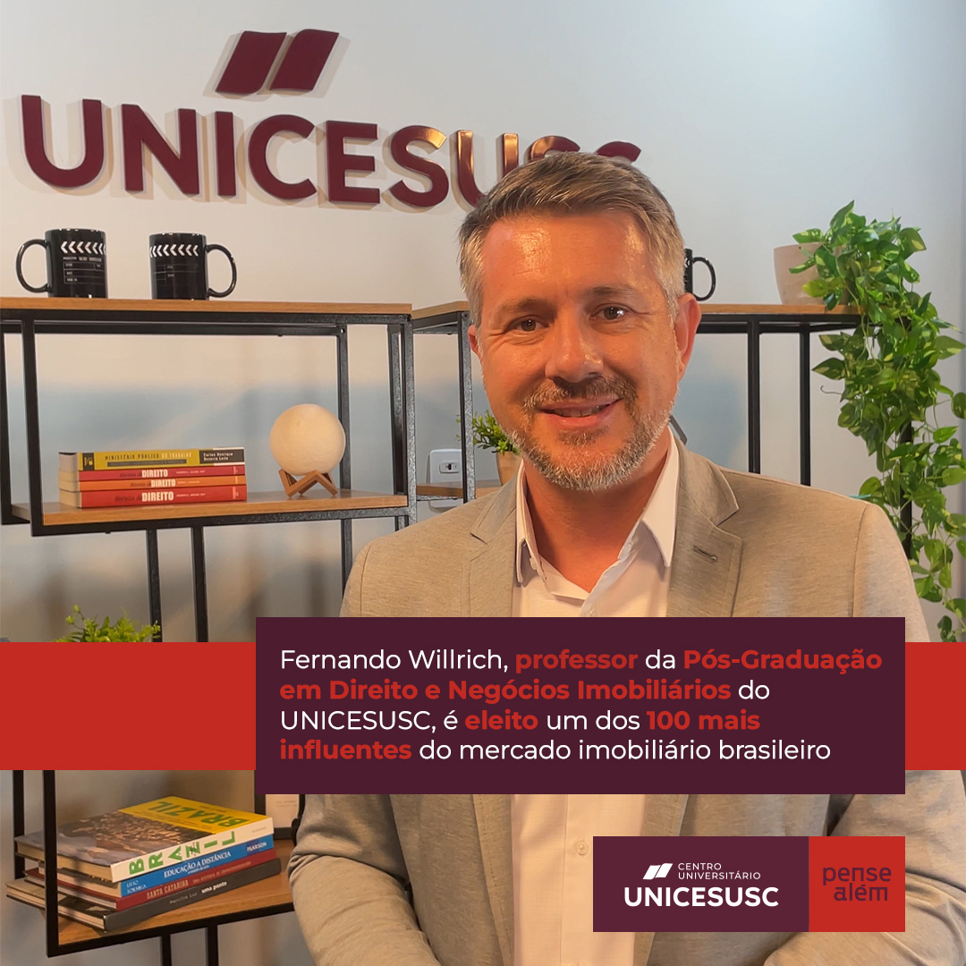 Fernando Amorim Willrich, professor da Pós-Graduação em Direito e Negócios Imobiliários do UNICESUSC, Presidente do CRECI-SC (Conselho Regional de Corretores de Imóveis de Santa Catarina) e Vice-Presidente da BRCondos foi eleito um dos “100+ Influentes...